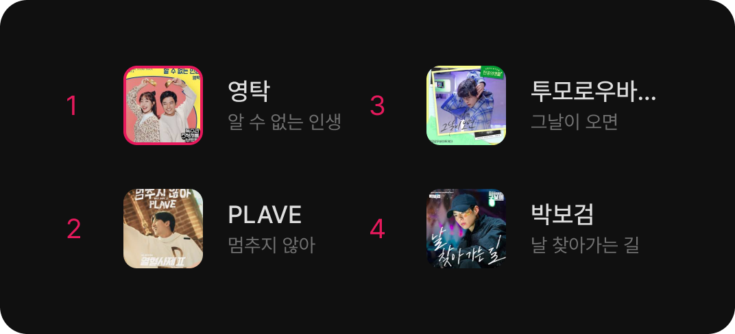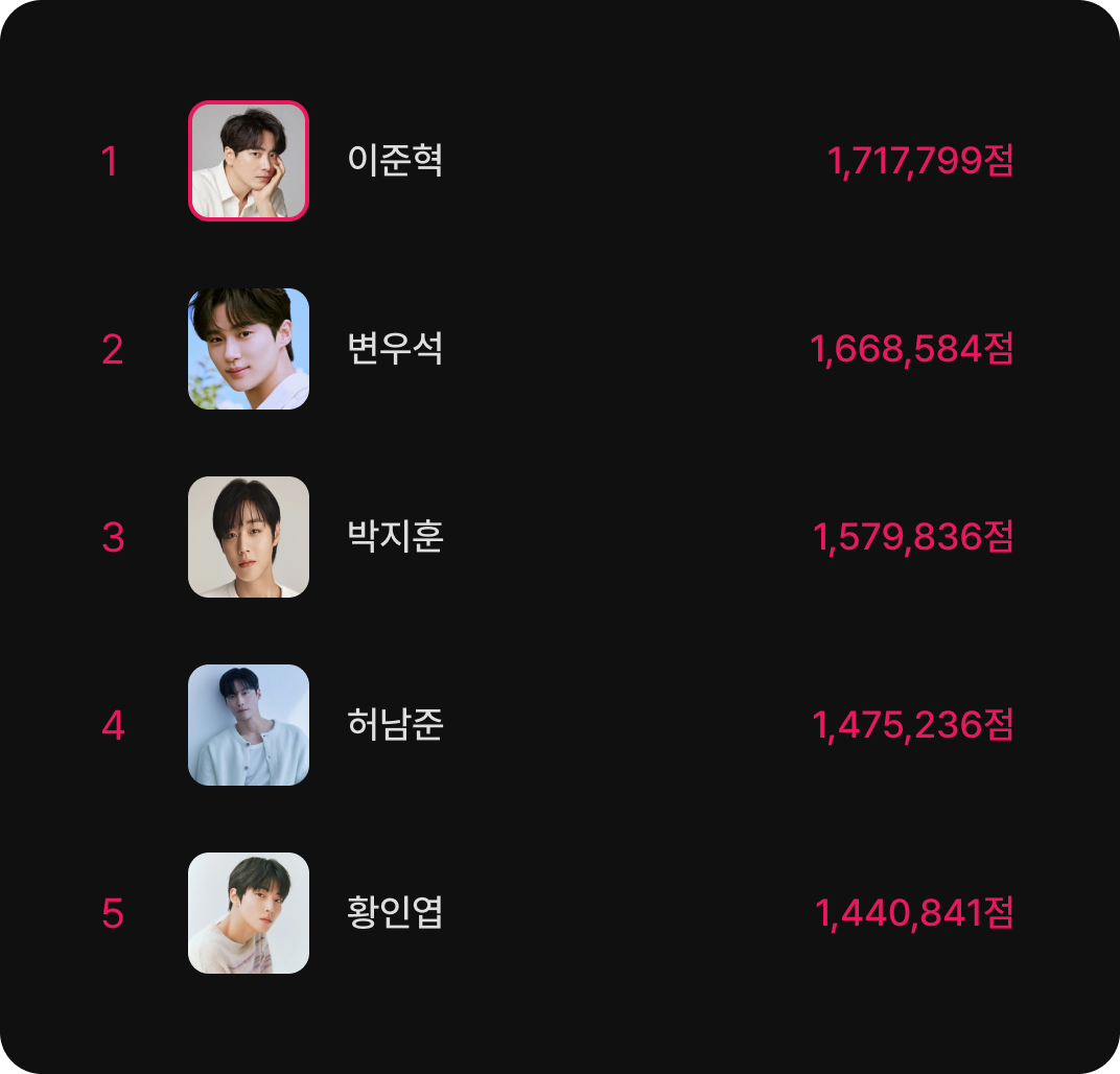 선호도 조사(투표) 50% PLEX-ON 차트 데이터 집계 50% 점수 종합하여 집계 및 반영
